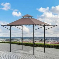Outsunny Double-Tier BBQ Gazebo Shelter 2.5M (8ft) With Side Shelves – Coffee – 01-0272