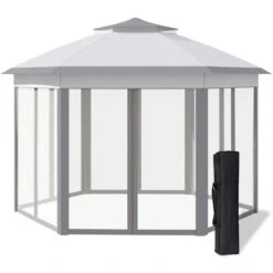 Outsunny Pop-up Hexagon Gazebo With Mesh Sidewalls 3200x3200mm – Light Grey – 84C-227LG