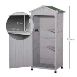 Outsunny 4-Tier Garden Wooden Storage Shed With 3 Shelves & 2 Doors – Grey – 845-063V01GY