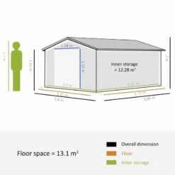 Outsunny 13 X 11ft Galvanized Steel Garden Shed With Foundation – Grey – 845-031V01