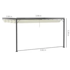 Outsunny 4m Wall Mounted Pergola Gazebo With Retractable Canopy – Beige – 84C-180V01