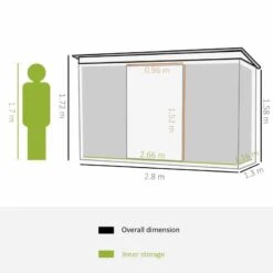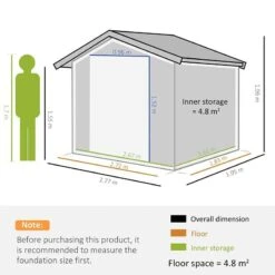 Outsunny 9ft X 4ft Metal Garden Storage Shed With Air Vent & Doors – Dark Grey – 845-032CG