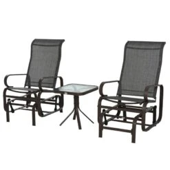 Outsunny Metal Garden Rocking Chair With Table – Brown – 84A-134