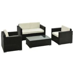 Outsunny 4-Seater Rattan Garden Furniture Set – Black – 860-024
