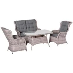 Outsunny 4-Seater Rattan Garden Furniture Set – Grey – 860-114