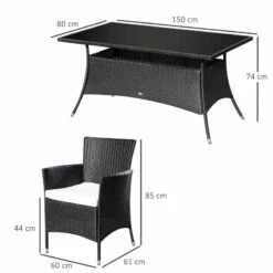 Outsunny 6-Seater Rattan Dining Patio Table And Chairs Set With Cushion – Black & Cream – 841-071