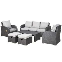 Outsunny 8 Piece Rattan Garden Furniture Set – Grey – 860-096V00GG