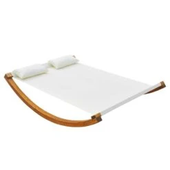 Outsunny Double Wooden Rocking Sun Lounger – White – 01-0860