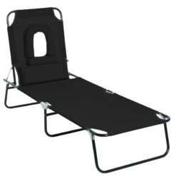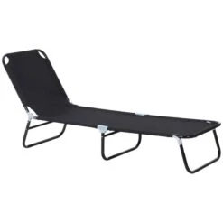 Outsunny Reclining Sun Lounger With Cushion – Black – 84B-184V70BK