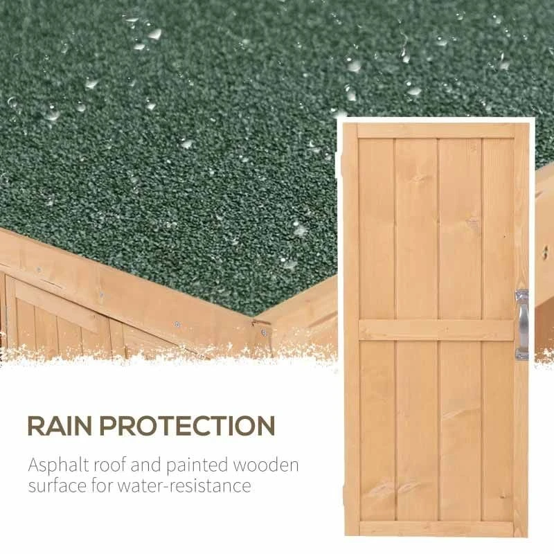 Introducing the Outsunny Garden Storage Shed with 2-tier shelf, a compact and durable solution for storing tools and garden accessories. This shed features a water-resistant asphalt roof and a painted wooden surface, ensuring long-lasting outdoor use. With a hinged roof for better ventilation and easy access, along with a 2-tier shelf for organizing your items, this storage shed is perfect for limited spaces. The double front doors with metal handles provide convenient access to your tools. Assembly is required for this functional and space-saving storage solution.