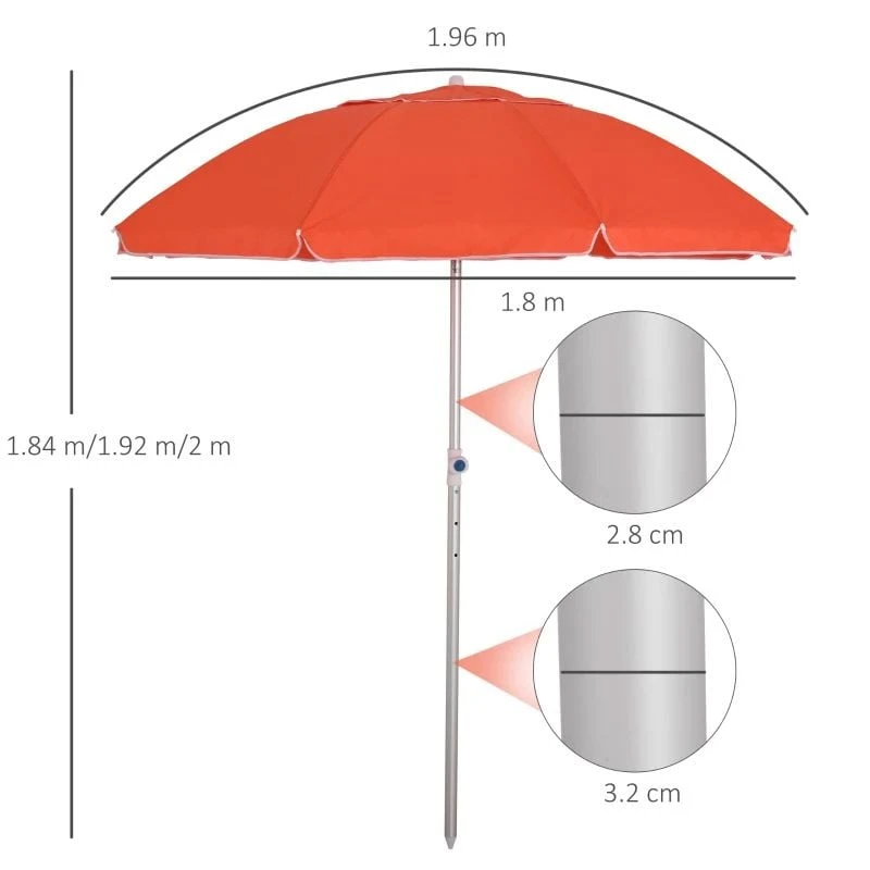 Outsunny 1.9m Beach Umbrella with Adjustable Angle Pointed Design Carry Bag – Orange – 84D-092OG
