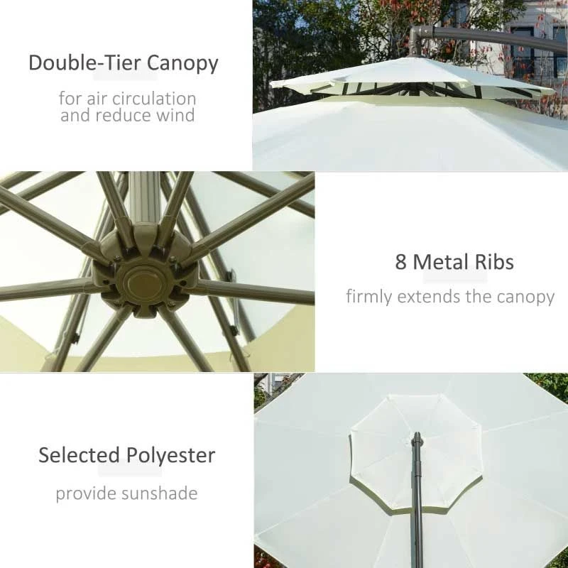 Outsunny 2.7m Banana Cantilever Parasol with Crank Handle and Cross Base – Beige – 84D-187BG