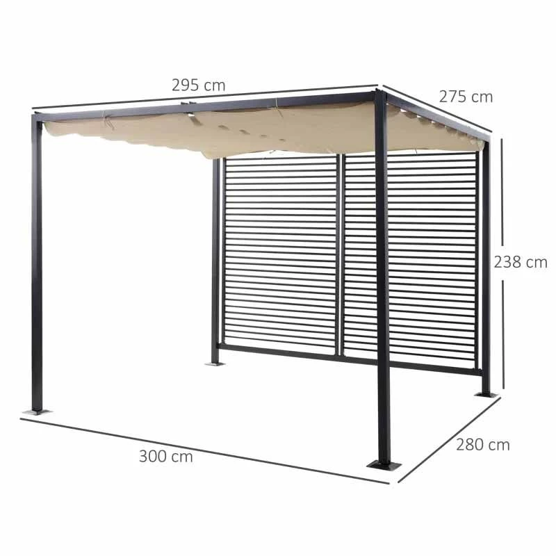 Outsunny 2.8m x 3m Outdoor Garden Patio Retractable Pergola Gazebo – Beige – 84C-138