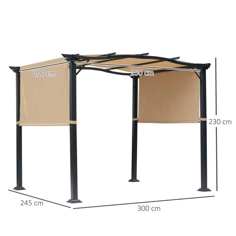 Outsunny 2.96 x 2.45 x 2.3m Outdoor Retractable Pergola Gazebo with 2 Adjustable Sides – Khaki – 84C-124