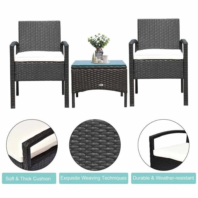 The modern Outsunny 3-piece outdoor patio furniture set provides you relaxing and beautiful outdoor lounging experience so you can enjoy your wonderful outdoor time. The ideal for poolside, deck, patio, and many other. This patio outdoor chair has a steel structure for long-lasting use and can withstand changes in temperature. The cushion cover can be removed and washed. Its lightweight and UV resistant.