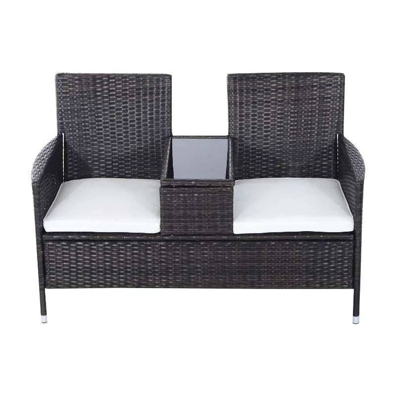 - Connected two-seat and middle table design, ideal for catching up with a friend outdoors
