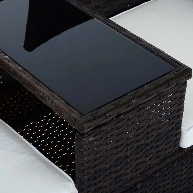 If you are looking for a piece of furniture to really compliment your outdoor living space, this Outsunny 2-seater garden bench is the one for you. The wide seats, high back and arm rests are perfect for you and friend to feel totally supported and comfortable for hours on end. The glass top middle table is ideal to rest your drinks or even a book and is easily cleaned with a damp cloth. Constructed from a sturdy metal frame and wrapped in rattan, this garden bench is durable and will withstand the elements for years to come. Finished off with an extra think cushion on each seat we can se sure you will sink into complete relaxation in a peaceful spot of your outdoor living space.
