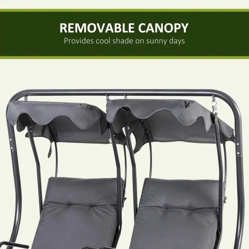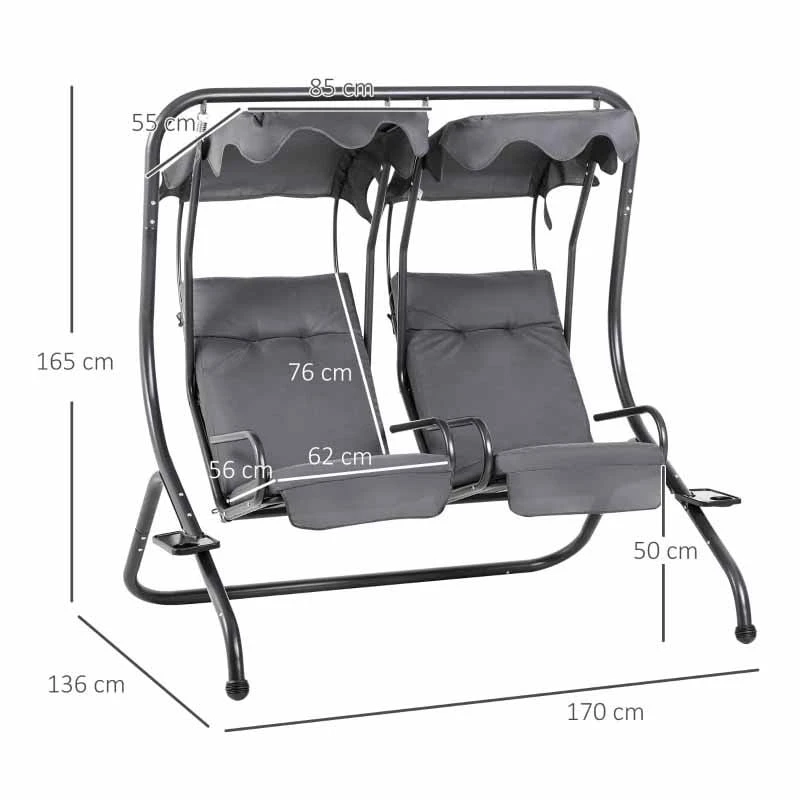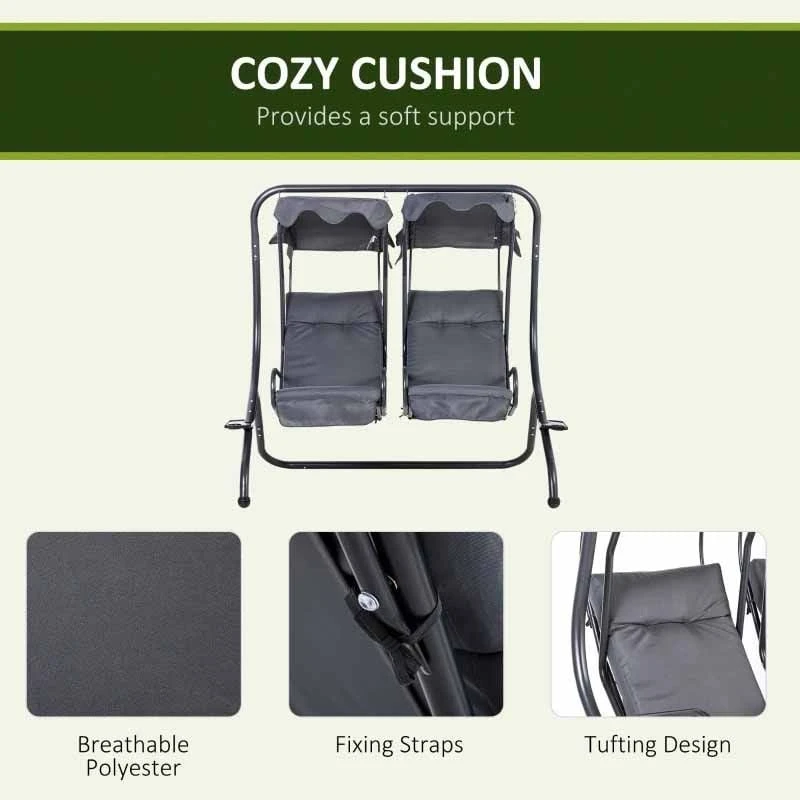 Outsunny 2 Seater Seperate Canopy Garden Swing Chairs – Grey – 84A-052V71