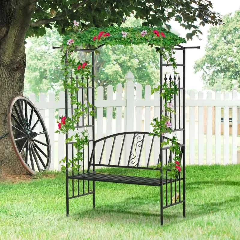 Outsunny Steel Frame Outdoor Garden Arch w/ 2-Seater Bench Black – 844-282