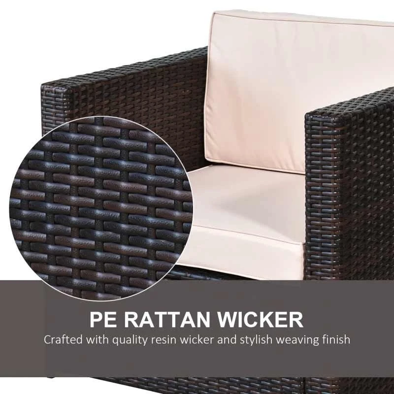 Outsunny 2-Seater Steel Rattan Sofa Furniture Set with Cushions – Brown- 860-073V01BN