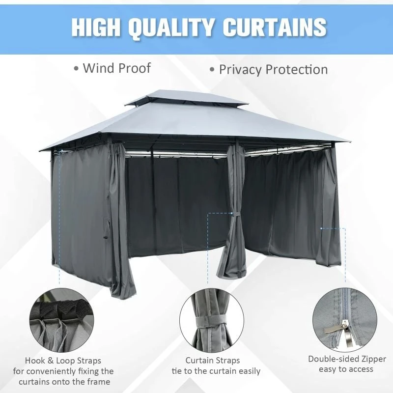 Outsunny 2 Tier Garden Gazebo with Curtains 3000x4000mm – Grey – 84C-099GY – Details