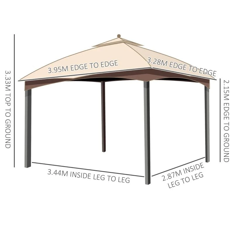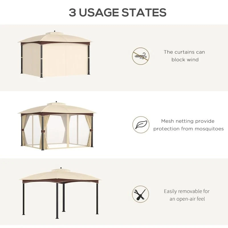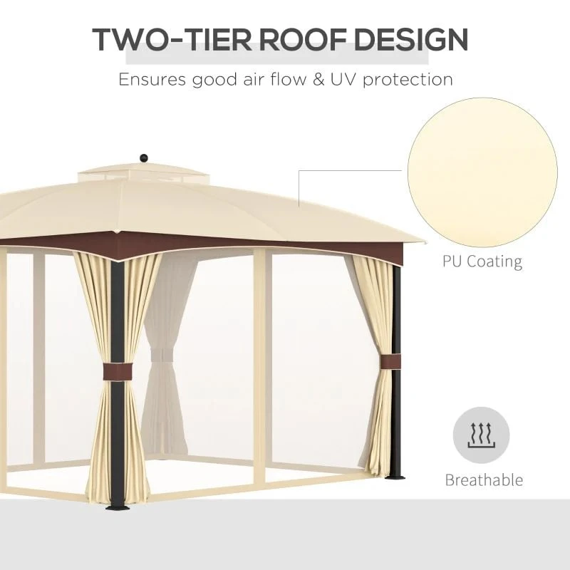 Outsunny 2 Tier Garden Gazebo with Curtains and Nets 3000x4000mm – Khaki/Brown – 84C-270 – Details