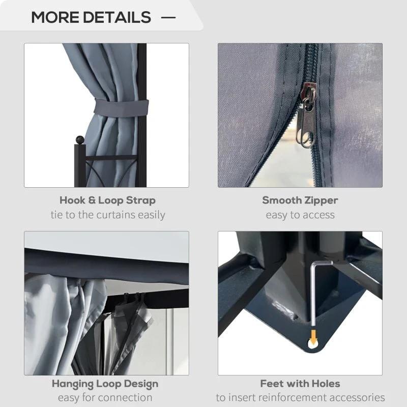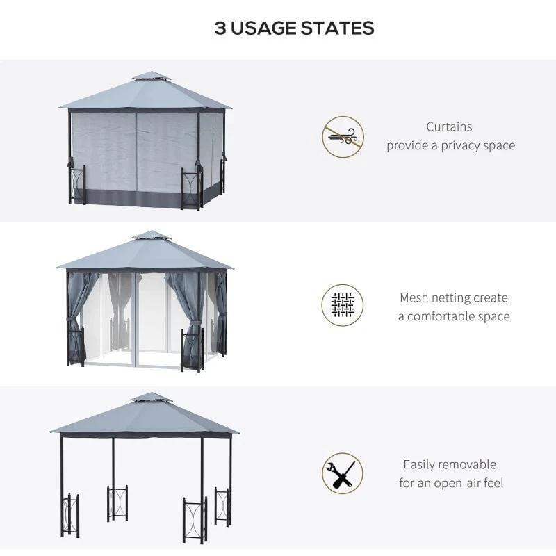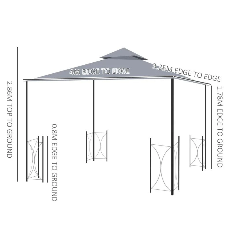 Outsunny 2 Tier Garden Gazebo with Curtains and Nets 3350x4000mm – Grey – 84C-331LG – Details