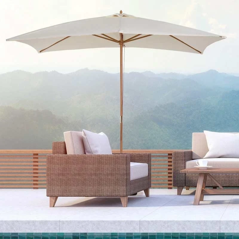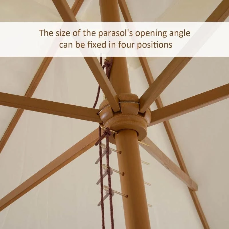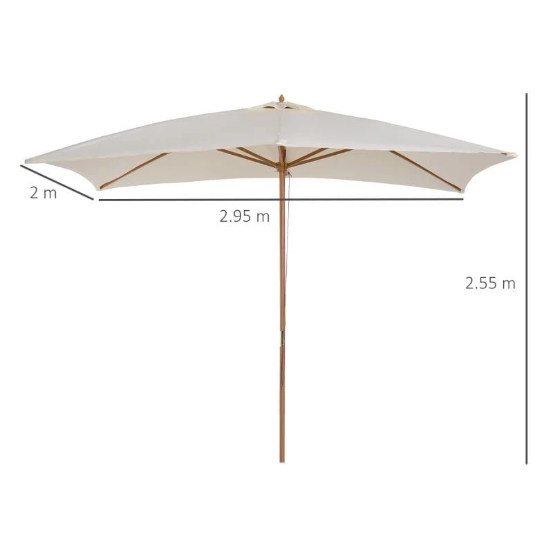 Outsunny 295L x 200W x 255Hcm Wooden Patio Parasol Umbrella – Cream – 01-0215
