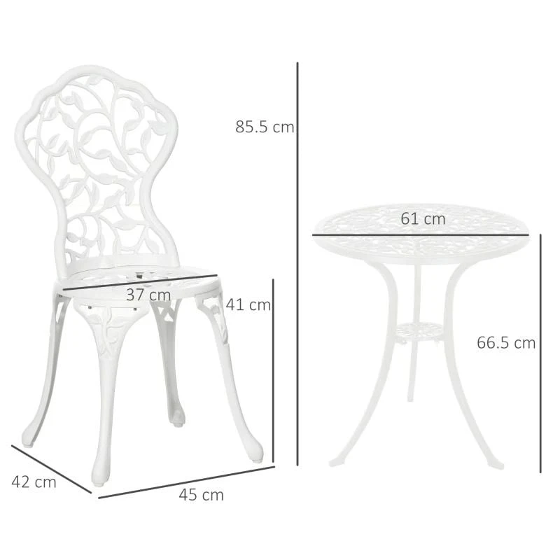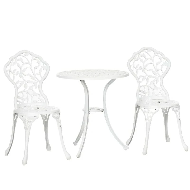 Outsunny 3 Pcs Aluminium Bistro Set – White- 84B-028V00WT
