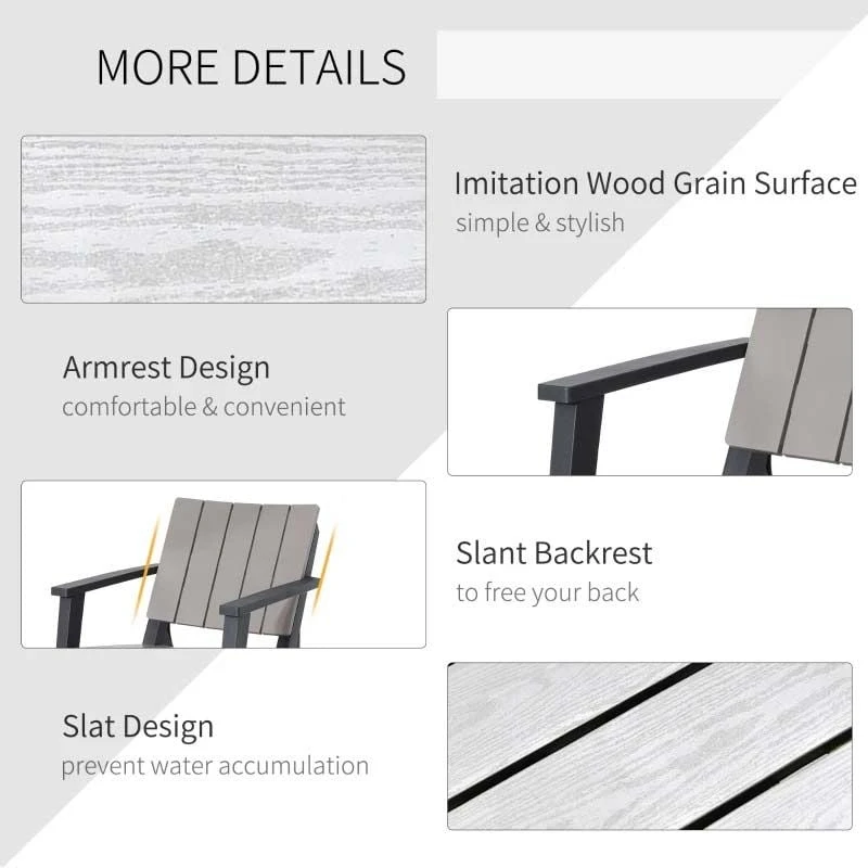This Outsunny garden coffee set is the perfect addition to your patio, garden, lawn, or any other outside spaces. It comes with two chairs and a round coffee table. It offers you a cosy seating option with the slat design of the seat and back. With this set, you can spend time outdoors with loved ones or friends. Polypropylene is used to make tables and chairs in fashionable styles that are durable. Assembly necessary.
