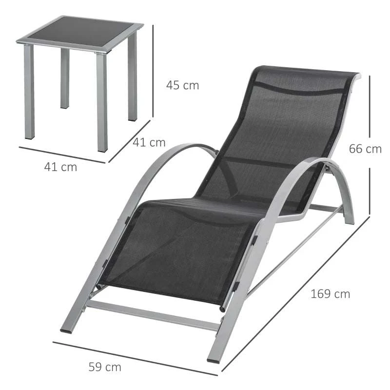 Outsunny 3 Piece Sun Lounger Set With Table – Black – 84B-570SR