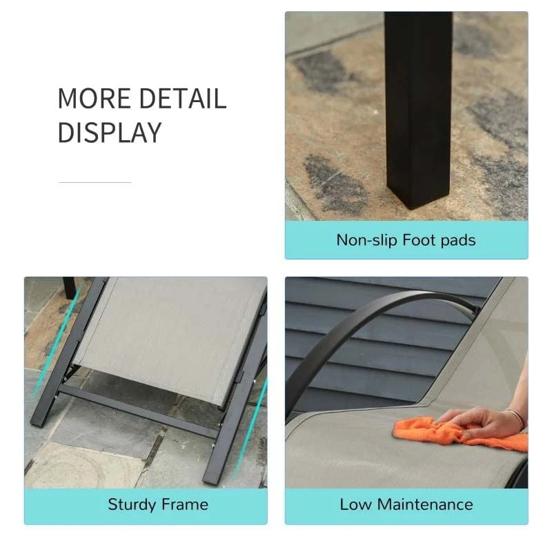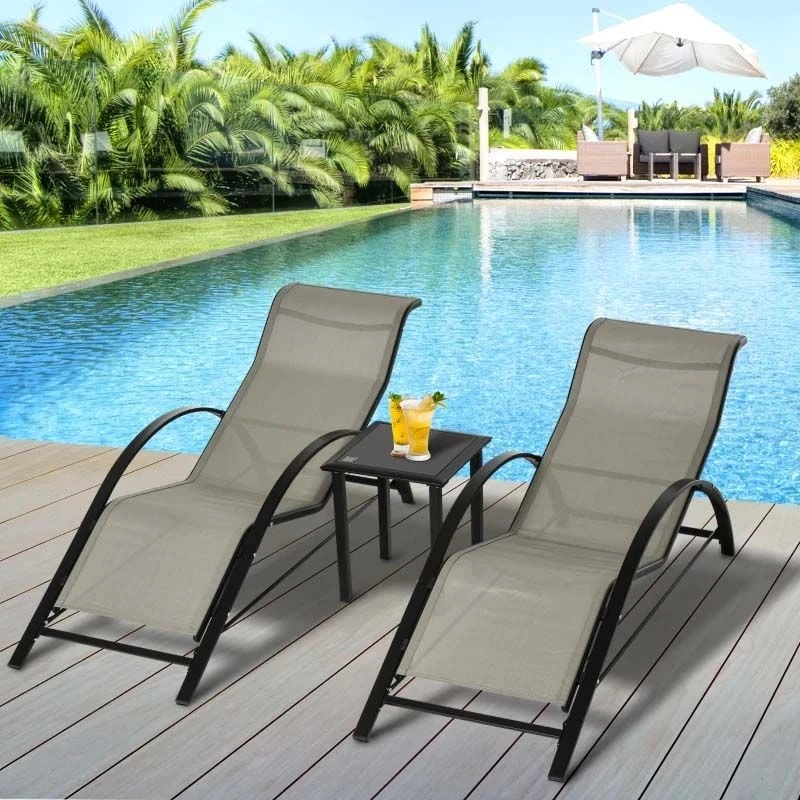 Outsunny 3 Piece Sun Lounger Set With Table – Grey – 84B-570GY