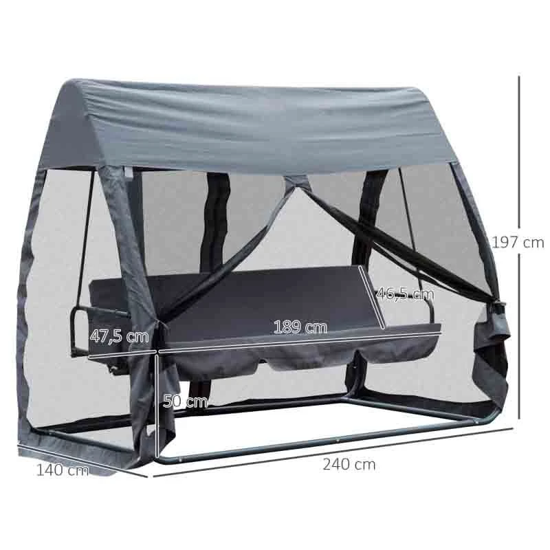 Outsunny 3 Seater Convertible Swing Chair with Anti-UV Canopy – Grey – 84A-063