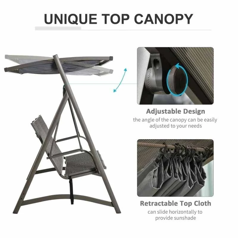 This Outsunny Rattan Swing Chair is a great way to chill with your friends. The backrest and seat are made of durable 8mm PE rattan, which is water & UV-resistant also making this swing chair easy to clean and maintain. The canopy top is made of PC panels for reliability and you can adjust the angle of the canopy to meet different needs. The retractable top cloth under the canopy can slide horizontally, which means you can fully customize the sunshade level throughout the day. This swing chair comfortably holds 3-persons with its aluminium frame which has a stable structure and strong supporting force. It completes with fixed straps to reduce the shaking amplitude of the seat for extra safety. The swing chair is an ideal addition to your patio, garden, porch, etc.