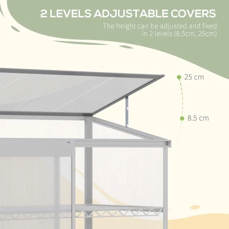 This Outsunny 3 tier cold frame mini greenhouse provides strength and protection for plants and vegetables, with polycarbonate panels protecting the inside from wind and rain. Two shelves are placed inside for you to organize your plants, with a lift-up lid and sliding door for easy access.