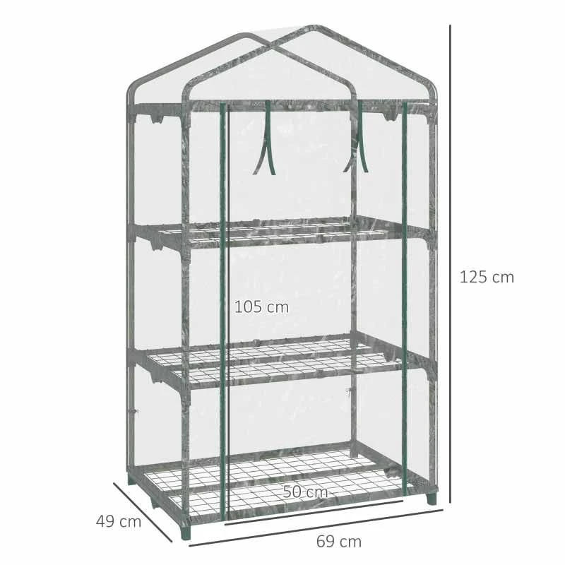 Outsunny 3 Tier Mini Greenhouse with Wire Shelves 69L x 49W x 125Hcm – Clear & Dark Green – 845-606