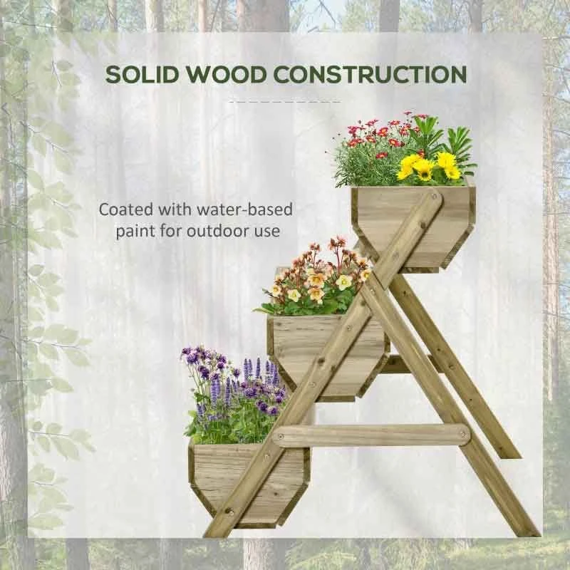 Outsunny 3 Tier Raised Wooden Planter Grow Box – Green – 845-647GN
