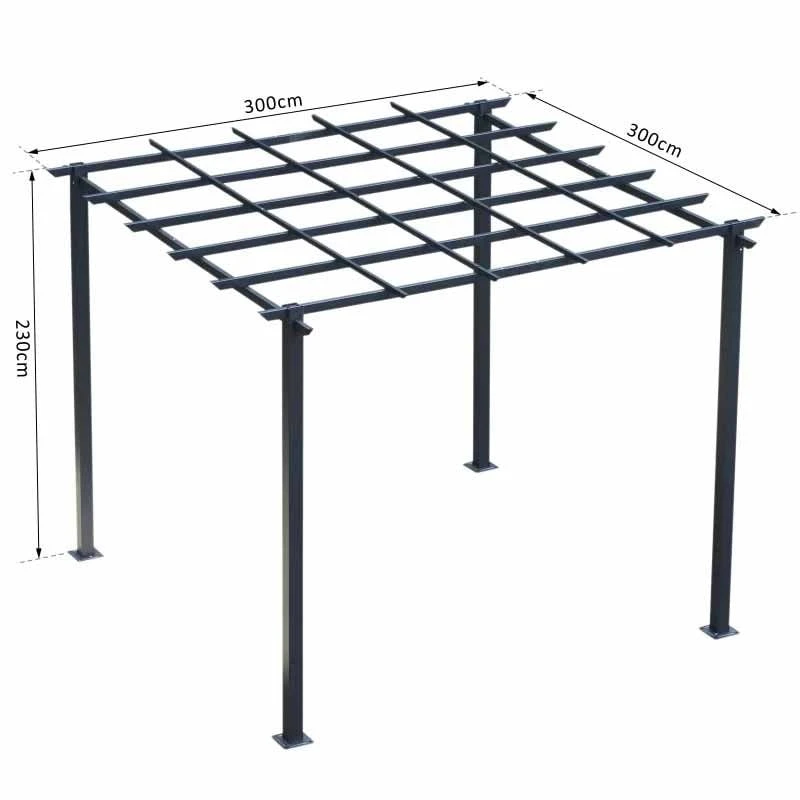 Outsunny 3 x 3m Metal Pergola Gazebo Grape Trellis for Climbing Plants – Black – 845-231
