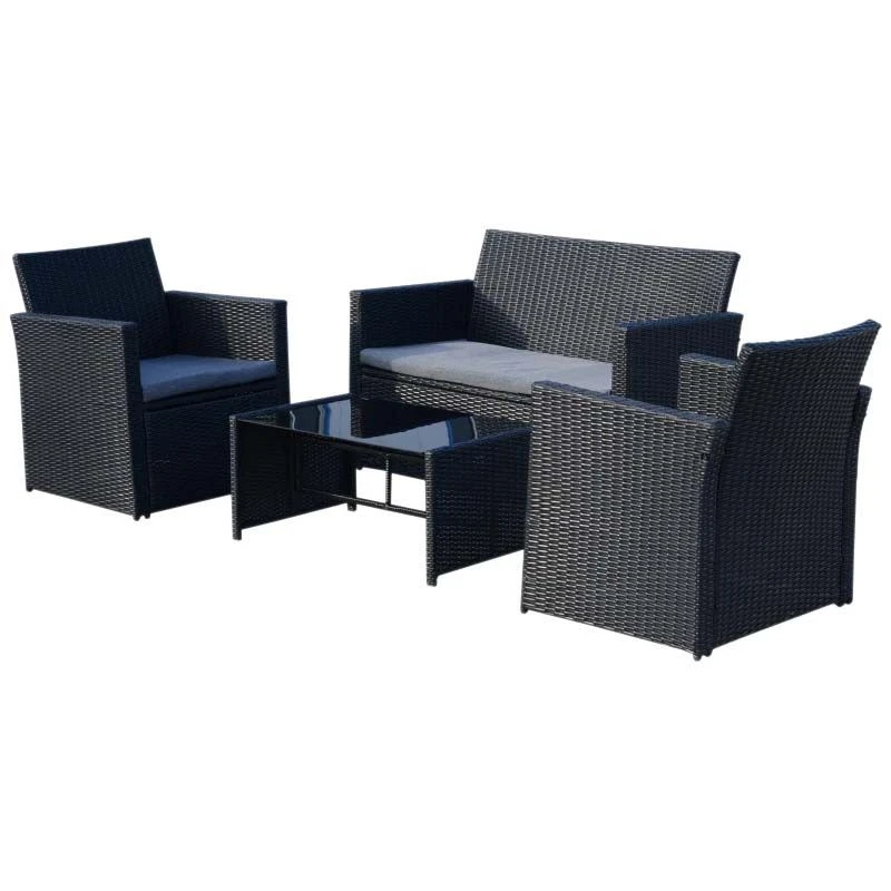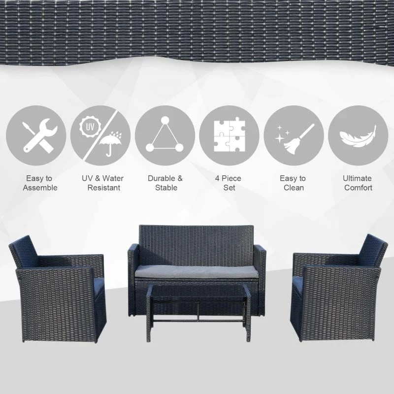 Outsunny 4-Seater Rattan Garden Furniture Set – Black – 860-064V01BK