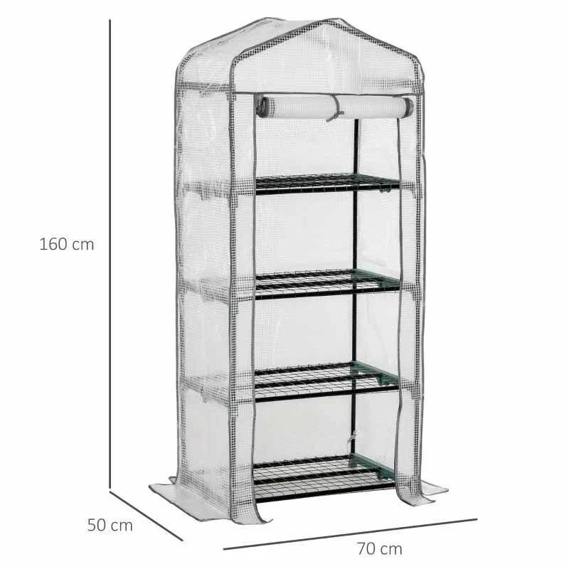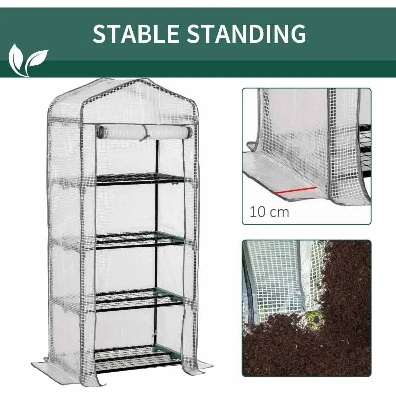 Outsunny 4 Tier Portable Mini Greenhouse 160H x 70L x 50Wcm – White – 845-228V01WT
