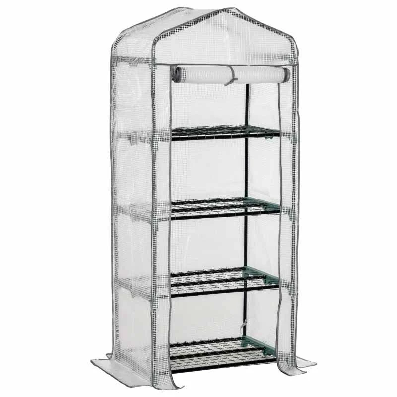 This Outsunny portable mini greenhouse is built with a strong powder coated steel frame and includes four shelves to keep plants, herbs and vegetables organised. It has a PE cover to allow sunlight to reach the flowers and plants, and two zips for quick access.