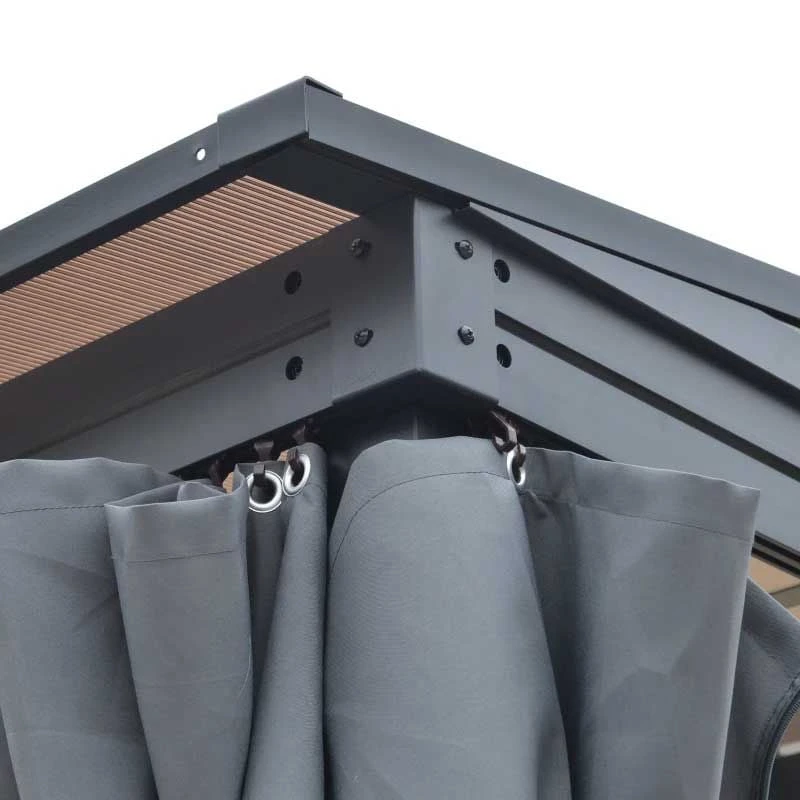 Outsunny 4 x 3m Outdoor Hardtop Pergola Gazebo with Polycarbonate Roof & Curtains – Grey – 84C-191