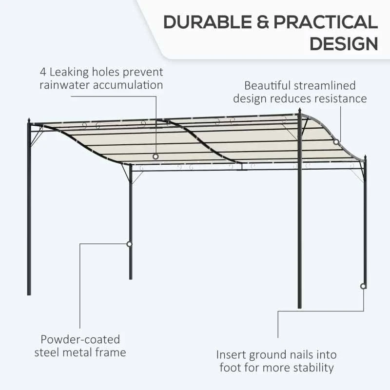 Outsunny 4 x 3m Wall Mounted Pergola Gazebo Awning for Garden & Door Porch – Cream – 84C-038V01