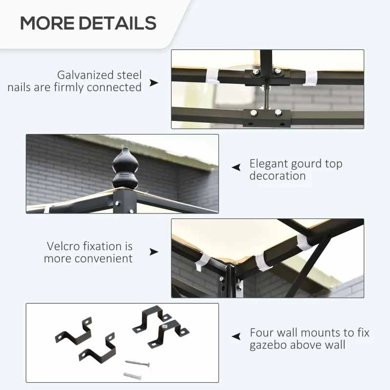 This Outsunny 4 x 3m wall mounted pergola gazebo is all you need to provide shade and shelter against sunlight in your outdoor area. This pergola comes in a 243 x 395cm design with a taller back and short front, a waved connecting frame covered with a top 180gsm polyester canopy. It will be a beautiful addition to your garden.