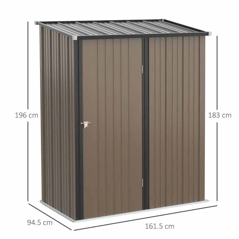 Instantly add storage space to your outdoor areas with this Outsunny 3.1 x 5.2ft outdoor storage shed. Constructed from galvanized steel with a corrugated finish, this metal shed provides a strong and durable shell to protect your belongings. The spacious interior allows for ample storage of garden and outdoor tools, equipment, and more. You can even customize the space by adding your own shelving for better organization. The sloped roof design ensures that rainwater won’t accumulate. The shed features a single door with a latch to securely keep it shut.