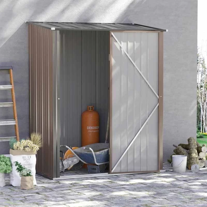 Outsunny 5.3ft x 3.1ft Outdoor Storage Shed with Single Door – Brown – 845-532BN