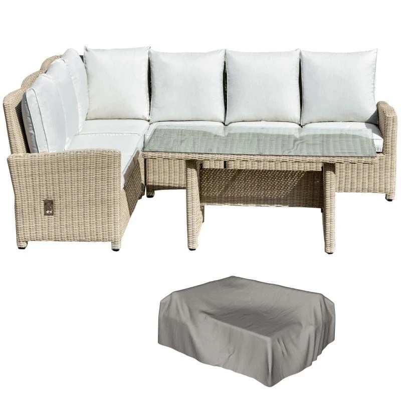 Check out this Outsunny 45-piece rattan garden sofa set with two 2-seater sofas, corner chair, middle chair and a coffee table that we can be sure will compliment your outdoor living space perfectly. The modern designs mean you can tuck the sofa into a nice corner of your garden making the most out of your space. Constructed from a metal frame and covered in a PE rattan wicker, this garden sofa set is durable, strong and will last for years to come. The extra wide seats, high back and arm rests will keep you and a few friends supported and completely comfortable for hours on end especially with the reclining seat feature for you to sit back and relax. The thick cushions, each have a zip making them easy to remove to wash and maintain yourself at home. The dining table has ample of space for you and your friends to rest your drinks, snack bowls of even to eat dinner around, finished with a tempered glass top for easy cleaning and a stylish design. If you are looking for a relaxing and modern rattan garden sofa set, this is the one for you.
