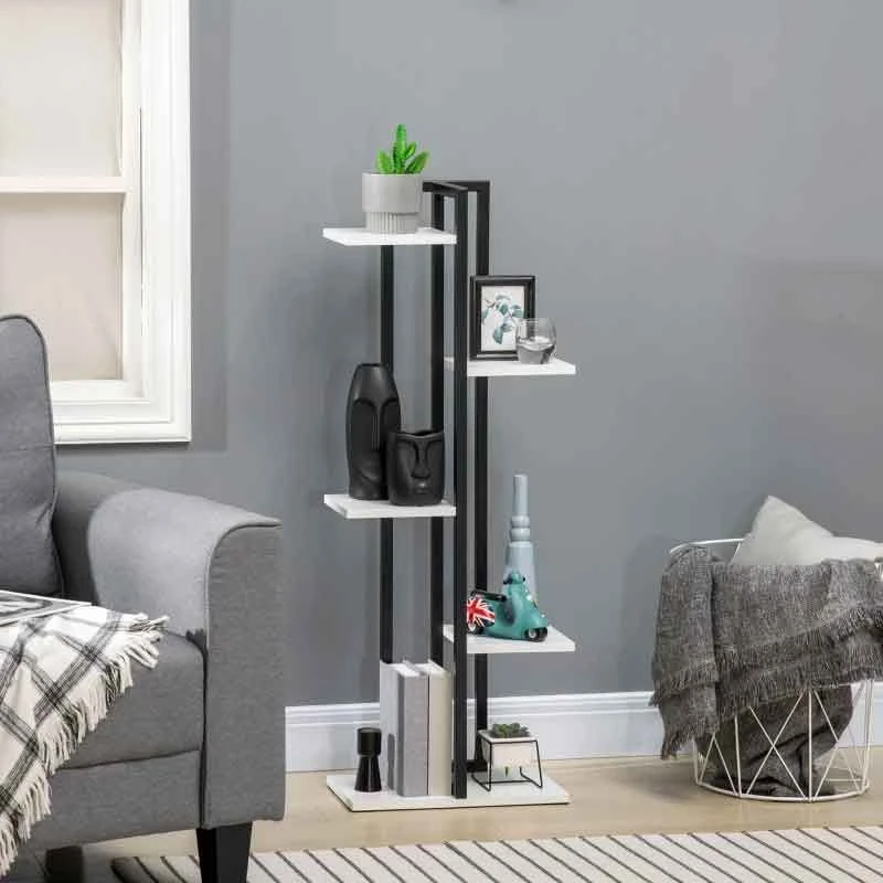 Outsunny 5 Tier Corner Plant Stand – White/Black – 845-759V00WT