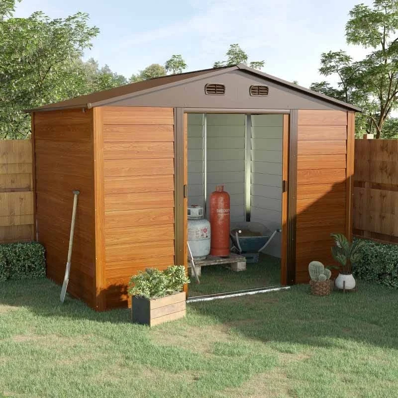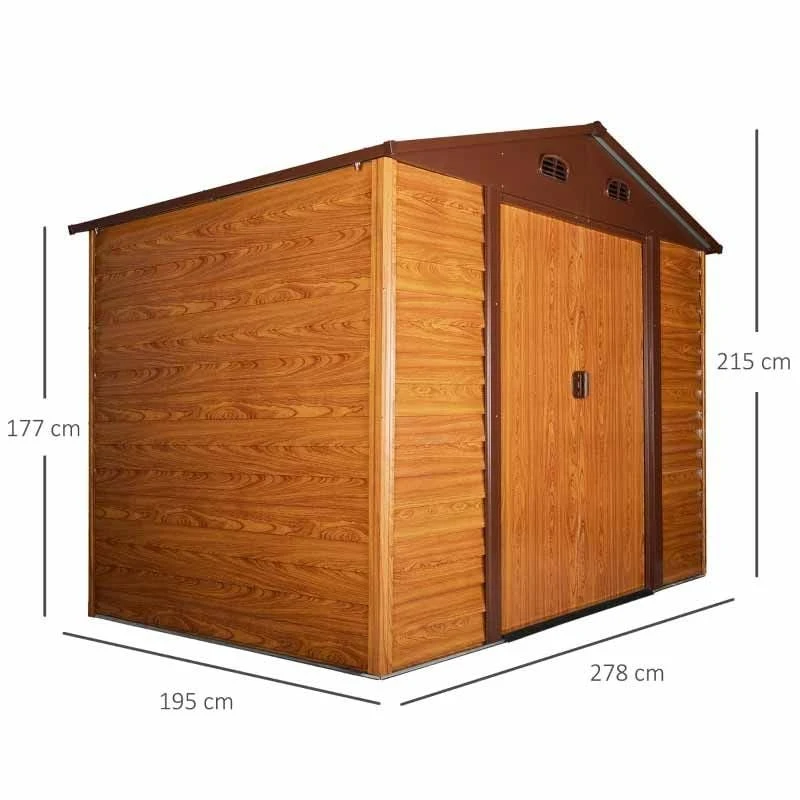 Outsunny 6.3 x 9.1ft Slatted Steel Wood Effect Garden Shed – Brown – 845-179V01