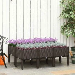 Outsunny 6 Piece Lightweight Raised Garden Planter – Brown – 845-439V02